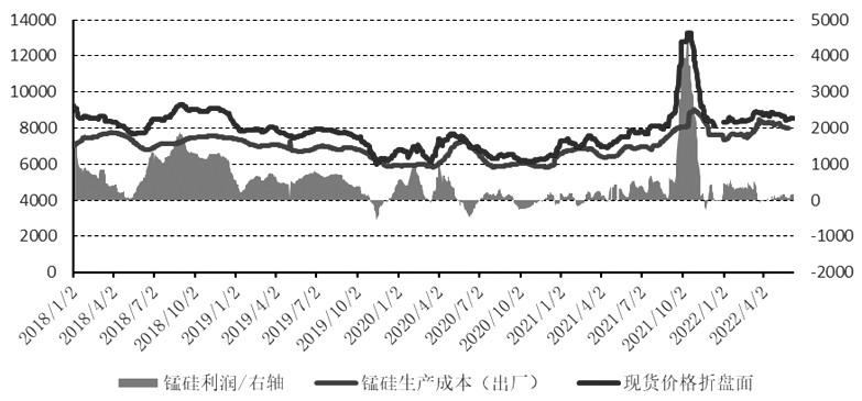 圖為錳硅成本與利潤變化