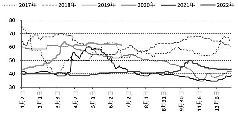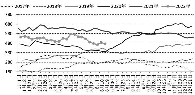 數據顯示,2022年5月,國內粗鋼日均產量311.65萬噸,較2021年全年均值增長10%;2022年上半年日均鐵水與粗鋼產量較高,需求較好。2021年日均粗鋼產量283萬噸,2022年1—5月累計粗鋼產量4.3564億噸,考慮到2022年鋼材需求弱于2021年,若2022年粗鋼產量同比不增,那么6—12月日均粗鋼產量不超過279.04萬噸,較5月減產11.6%才能維持鋼材供需平衡。下半年錳硅需求將面臨較大的降幅。