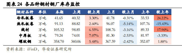 主要鋼鐵品種庫存情況(數據來源:iFinD,)