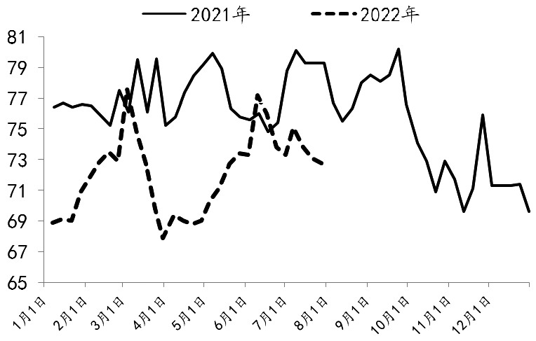 PTA供需有邊際好轉跡象。供應方面,短期逸盛寧波3線停車,4線提至滿負荷,逸盛大化225降負至六成運行,百宏降負至八成,PTA最新負荷調整至69.1%,供應出現收縮。8月恒力計劃檢修,供應延續低位運行。不過目前PTA暫未執行年度檢修計劃的產能已經不多,遠期有存量開工率提升和新產能投放的供應壓力。聚酯方面,經過7月份滌絲大廠的聯合減產和上游環節的讓利,聚酯高庫存、低利潤、弱需求格局出現邊際好轉。現金流改善,廠庫高位去化,聚酯開工目前小幅提升至79%。終端訂單情況有所好轉,織造開工小幅提升至55%,PTA需求環比出現提升。不過長期弱消費的背景暫難改變,坯布仍然面臨高產成品庫存壓力,需求長期承壓。