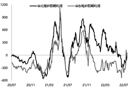 圖為鋼廠即期利潤(元/噸)