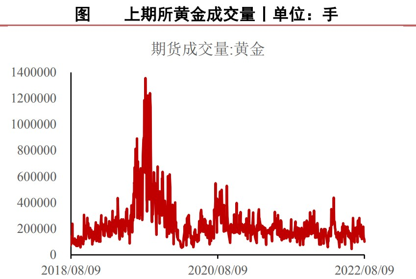 上個交易日(8月9日)上金所成交量為14,504千克,較前一交易日下降37.23%。成交量為1,267,384千克,較前一交易下降17.04%。上期所黃金庫存為3,171千克,較前一交易日持平。