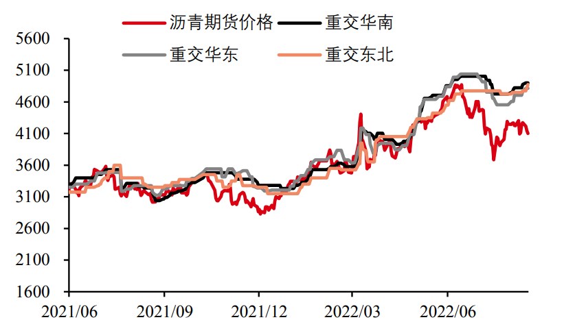 3、卓創資訊進口重交瀝青CFR人民幣完稅價格:華南,5160-5380元/噸;華東,4480-4640元/噸;北方,4480-4640元/噸。